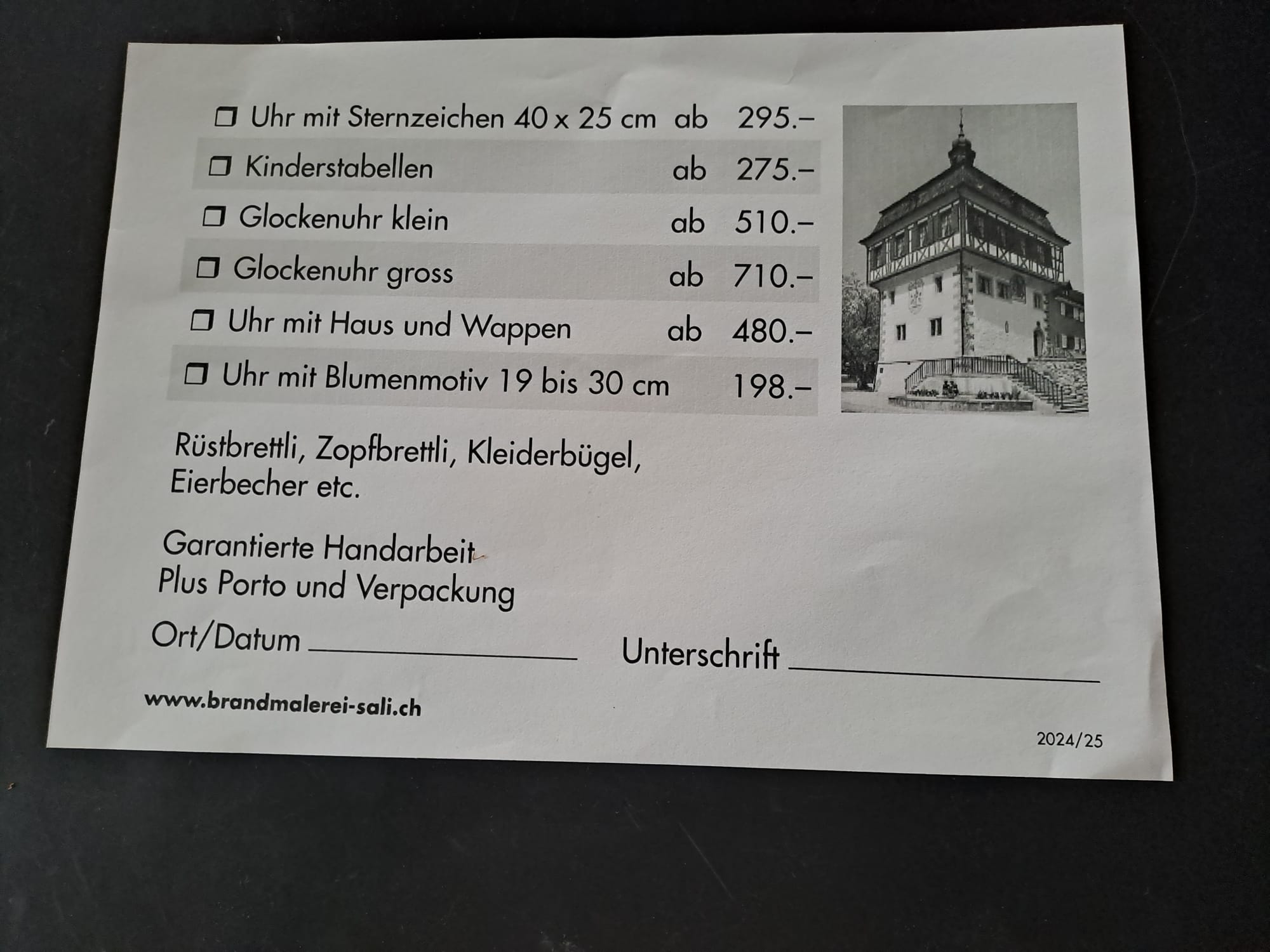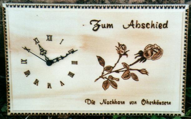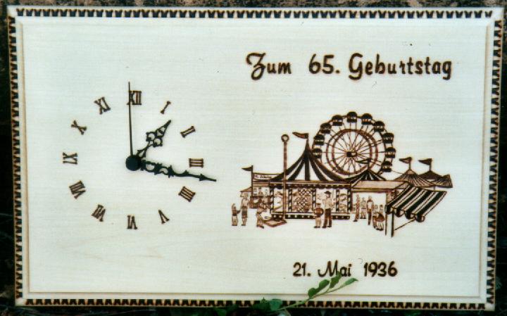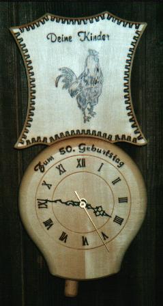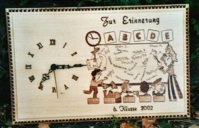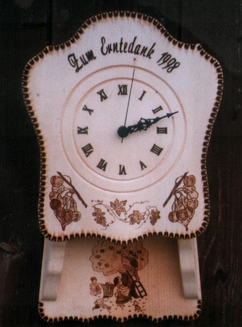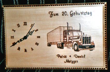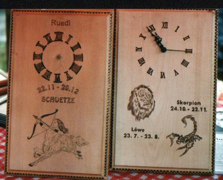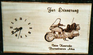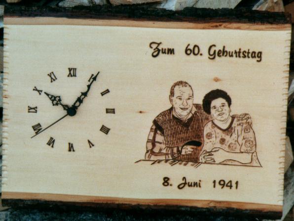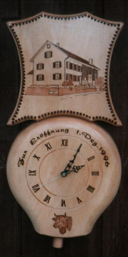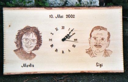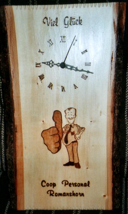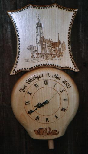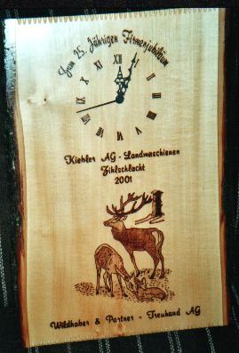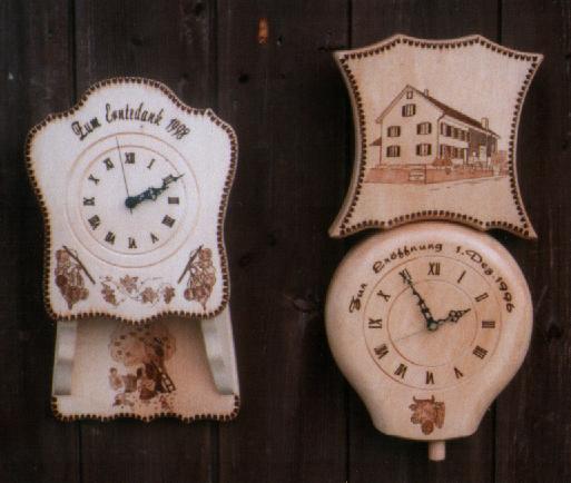 Sie können uns Ihr Foto - Motiv oder Vereinszeichen bringen, wir Brandmalen Ihre Räf und Glockenuhr zur Hochzeit - Geburtstag - Vereinsanlass, mit oder ohne Inschrift.